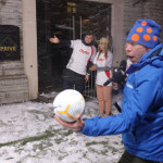 ФОТО: в Таллинне открылся новый спортивный ресторан — знаменитые гости играли в народный мяч на заснеженных улицах