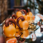 Помимо фуд-инсталляции были предложены напитки, созданные Хелис Хейтер: сухое газированное чайное вино Wain и безалкогольные напитки из Vaakumbaar: коктейль из красных апельсинов и оливок с биттерами Angostura.