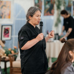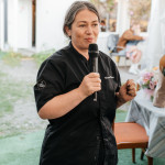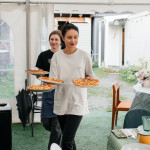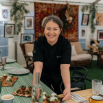 Вечер получился камерным: всего около 30 девушек, но именно это сделало общение особенно душевным и живым. На столах были фирменные угощения — тартар из баранины, запечённые баклажаны с перцем, салат из арбуза с брынзой, хачапури по-мегрельски, пирожки кячи с бараниной и, конечно, курзе — главная «фишка». Девочки шутили, что из-за такого застолья просто невозможно было встать.