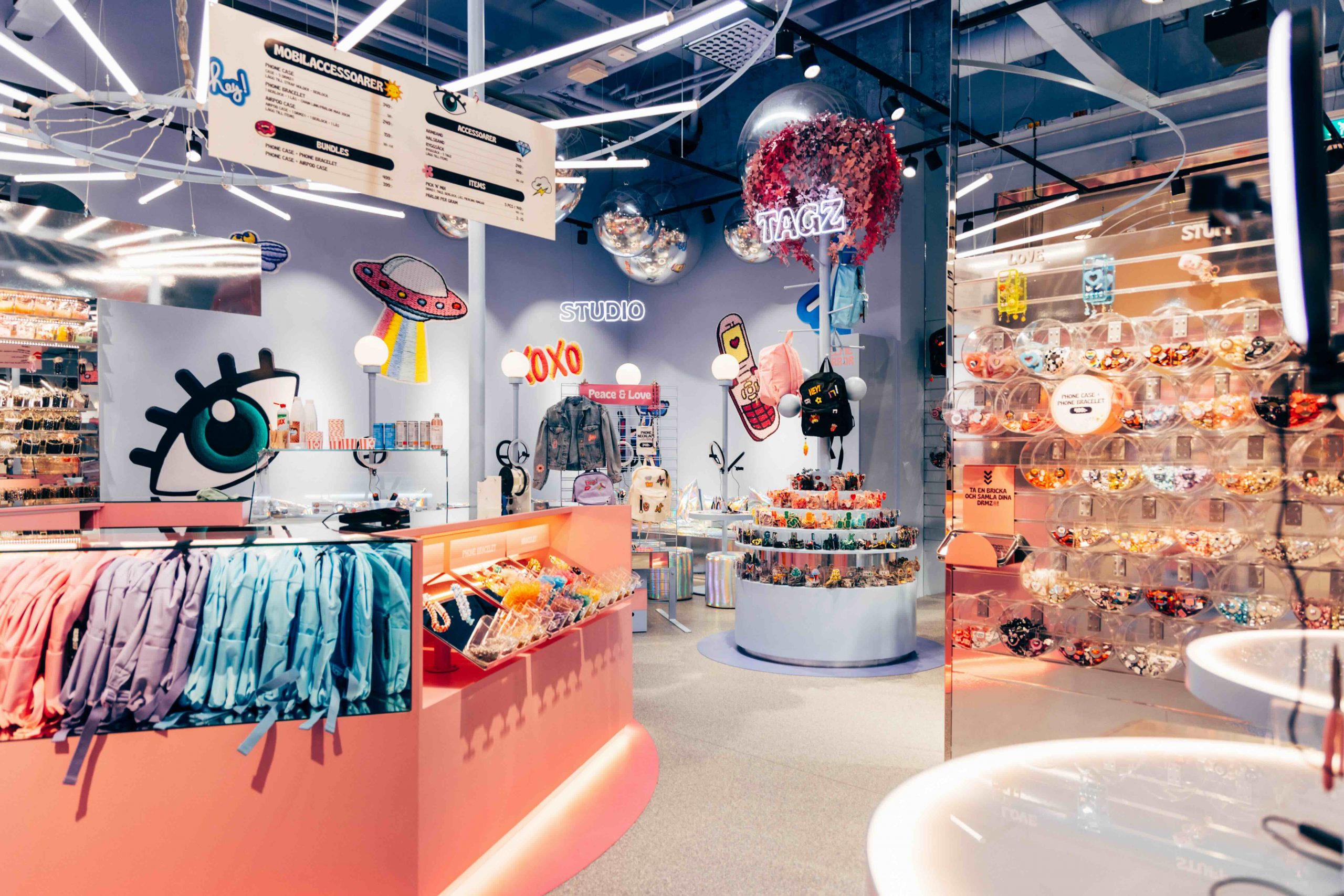 DRM-LND в центре Ülemiste скорее будет напоминать художественную студию, чем обычный магазин. На стенах представлены тысячи разноцветных материалов, в центре будет стоять рабочий стол с профессиональными инструментами и отдельно в углу – мини-фотостудия, чтобы запечатлеть свое творчество.