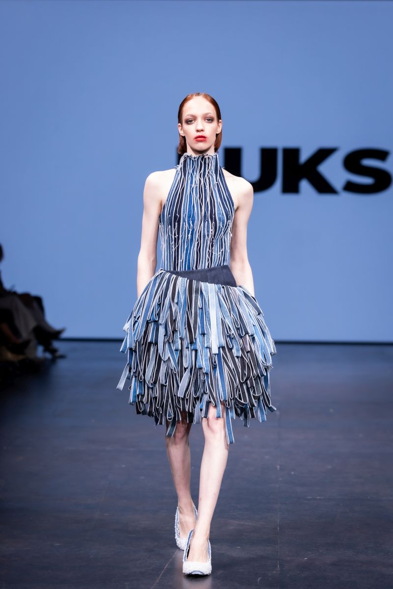 Sandra Luks представила, пожалуй, самую личную коллекцию — о боли и утрате. «Это чувство знакомо каждому. Это траур, который приходит, когда заканчивается любовь», — призналась она. Её работы нарочито неровные, с бахромой и необработанными краями. Джинса превращается в символ внутренней борьбы и усталости от бесконечной гонки. «Мы идеализируем усталость, считаем, что чем больше работаешь, тем ценнее человек. Но где место отдыху, чувствам, близости?» — задаётся вопросом дизайнер.