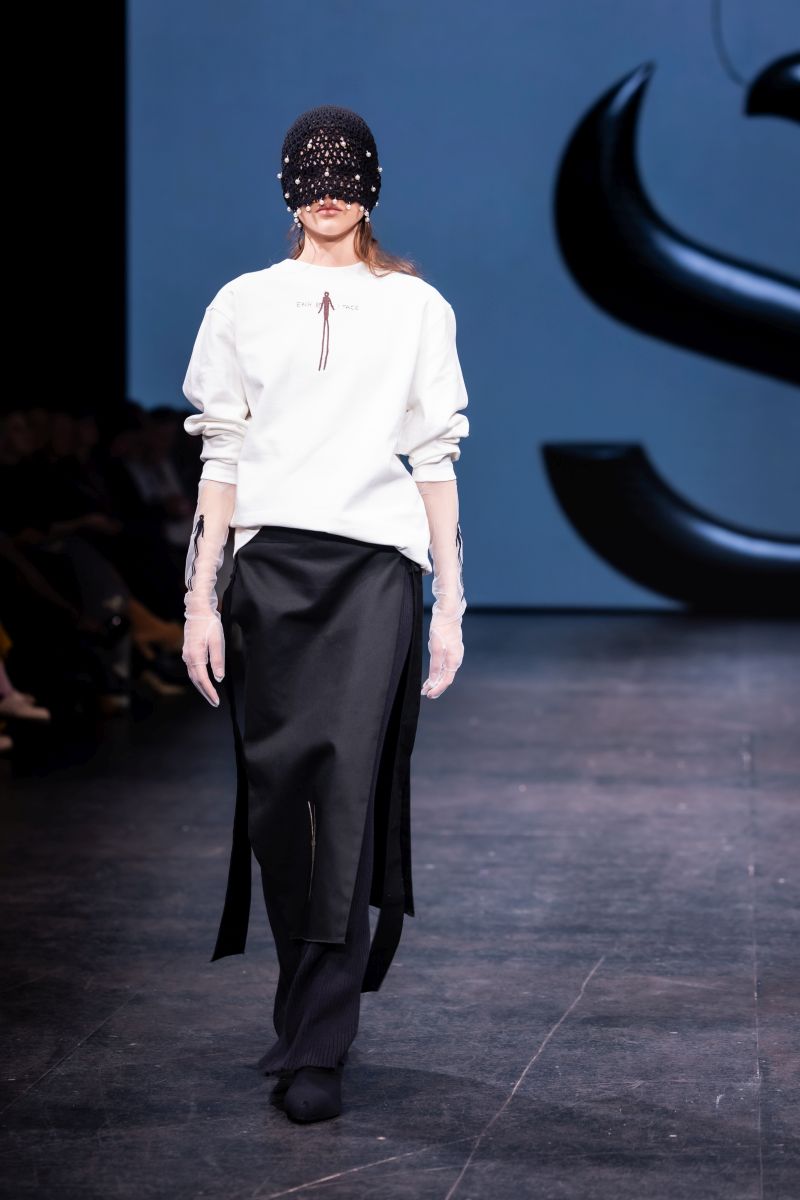 Auria Nurm, обладательница «Серебряной иглы», представила коллекцию Aether Spiritus под брендом Skeleton. Коллекция соединяет эстетику и духовность, вдохновлена рейки и идеей связи человека с невидимым миром. «Название переводится с латыни как “дыхание эфира” и отражает связь между внутренним миром человека и его энергией», — говорит дизайнер.