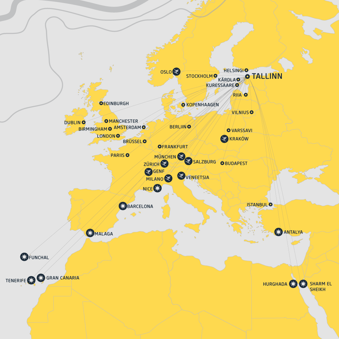 «В течение года из Таллиннского аэропорта можно напрямую улететь более чем в 50 городов, однако на самом деле эстонцы путешествуют по миру в тысячу разных направлений. Поэтому для Эстонии по-прежнему очень важны удобные стыковочные перелёты, — отметил Пяргмяэ. — Половина наших пассажиров летает через крупные транзитные аэропорты, которые обеспечивают ежедневное сообщение как для деловых, так и для туристических поездок. По сравнению с прошлой зимой увеличится количество рейсов в Копенгаген, Амстердам и Стамбул».