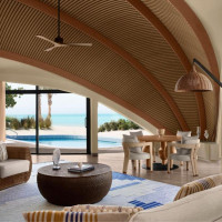 Архитекторы Foster + Partners создали виллы в форме раковин, которые буквально «вырастают» из песка и воды. Внутри — тёплый песочный дизайн, огромные панорамные окна, приватные бассейны и отдельные лежаки прямо у моря. Это не футуризм в духе «космических станций», но именно та роскошь, которая ощущается как другой мир: абсолютная тишина, дикие кораллы вокруг, обсерваторные площадки для звёздного неба и внимание к деталям, доведённое до одержимости.