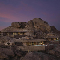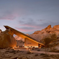 Один из самых атмосферных отелей Саудовской Аравии, спрятанный среди каньонов Аль-Улы. Он полностью построен по модульной технологии — все виллы привезли готовыми, чтобы не нарушить древний ландшафт, поэтому комплекс буквально растворён в скалах.