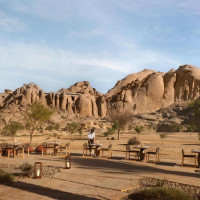 Концепция Habitas — «роскошь без стен»: никаких телевизоров и лишних технологий, только тишина пустыни, виды на песчаные монолиты и ощущение, что ты живёшь в другой временной реальности. Здесь проводят рассветные практики йоги, концерты под звёздами и арт-события — Аль-Ула в последние годы стала сильным культурным центром.