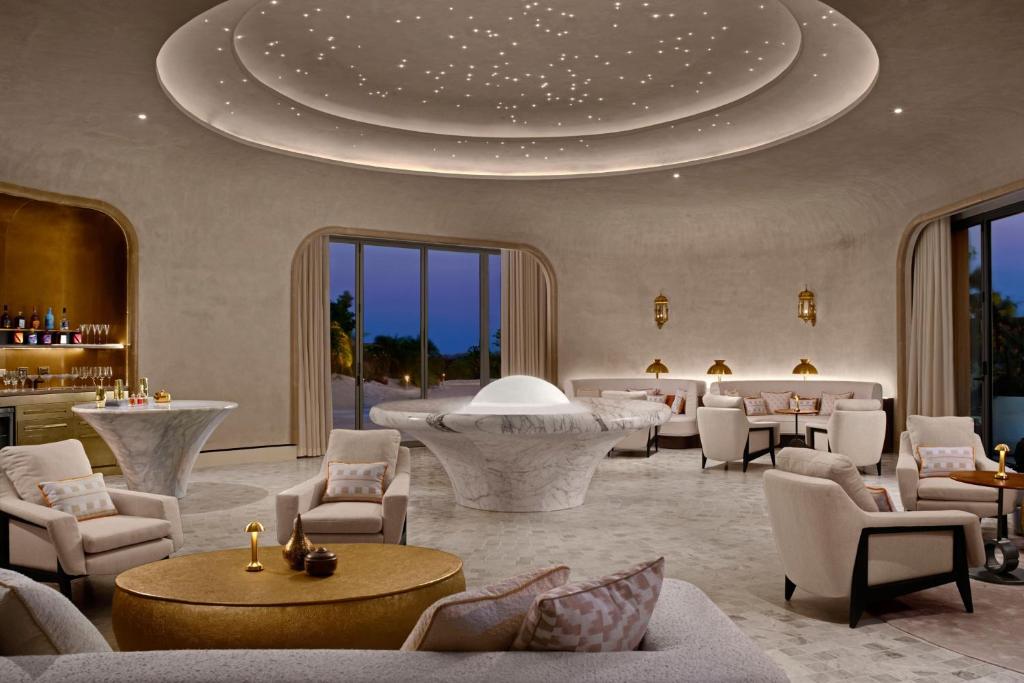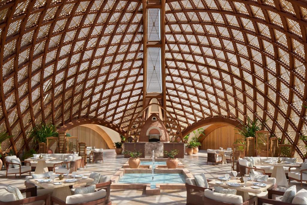 Один из самых футуристичных отелей Саудовской Аравии и флагман проекта The Red Sea. Его зеркальные купола и овальные виллы будто парят над водой, отражая небо и море так, что постройки полностью растворяются в пейзаже.