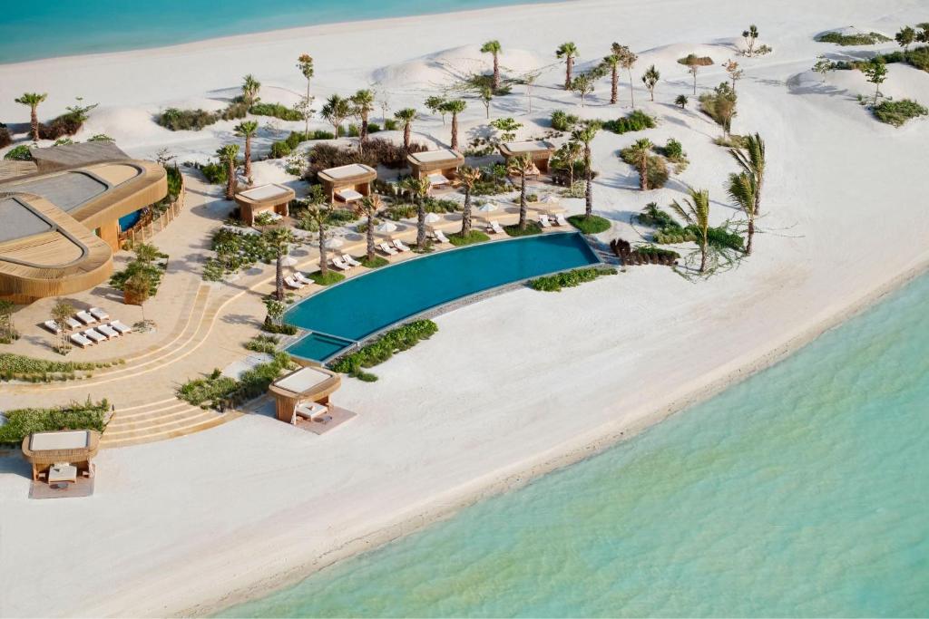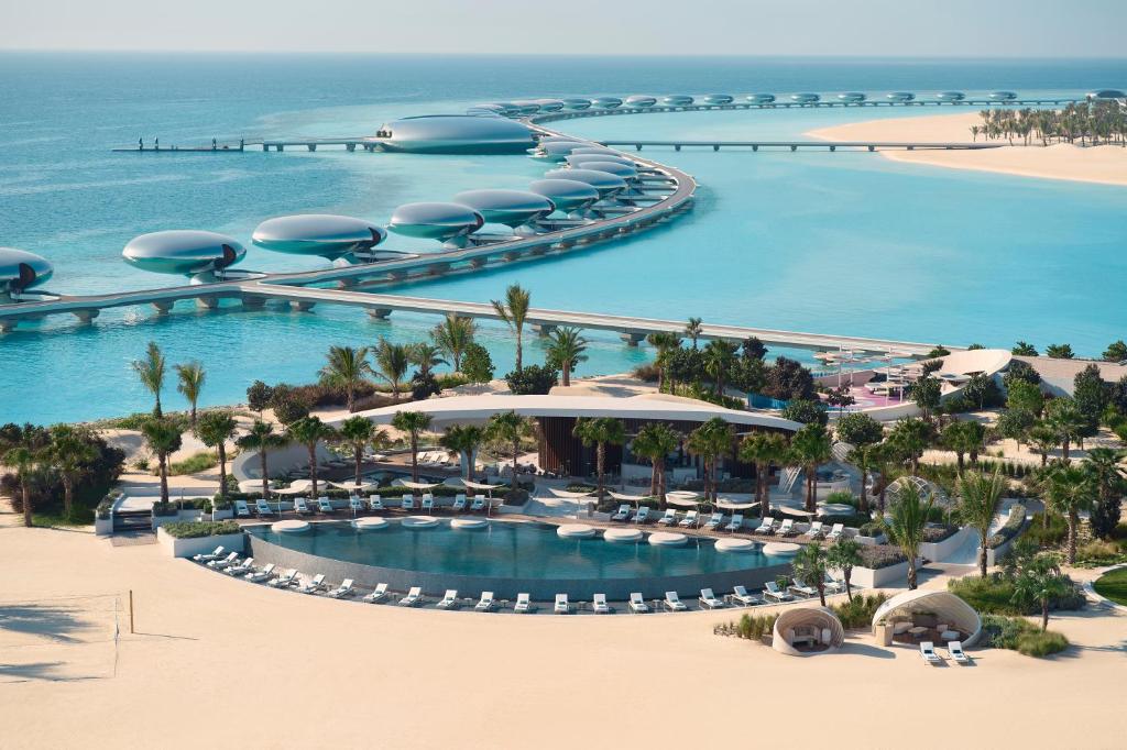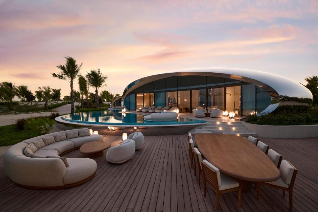 Архитекторы Foster + Partners создали виллы в форме раковин, которые буквально «вырастают» из песка и воды. Внутри — тёплый песочный дизайн, огромные панорамные окна, приватные бассейны и отдельные лежаки прямо у моря. Это не футуризм в духе «космических станций», но именно та роскошь, которая ощущается как другой мир: абсолютная тишина, дикие кораллы вокруг, обсерваторные площадки для звёздного неба и внимание к деталям, доведённое до одержимости.