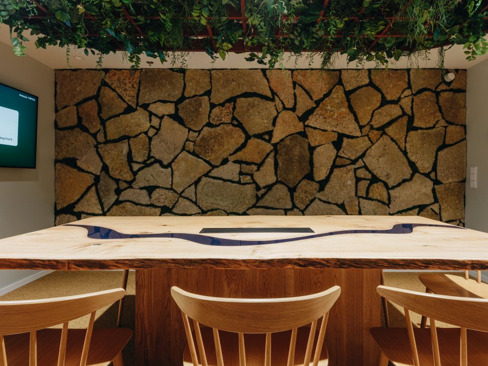 Через открытый конкурс технологическая компания Wise привлекла студентов Эстонской академии художеств к оформлению своего нового офиса в квартале Крулли. В результате появились две переговорные комнаты, объединяющие мексиканские лазурные сеноты и средиземноморское спокойствие.
