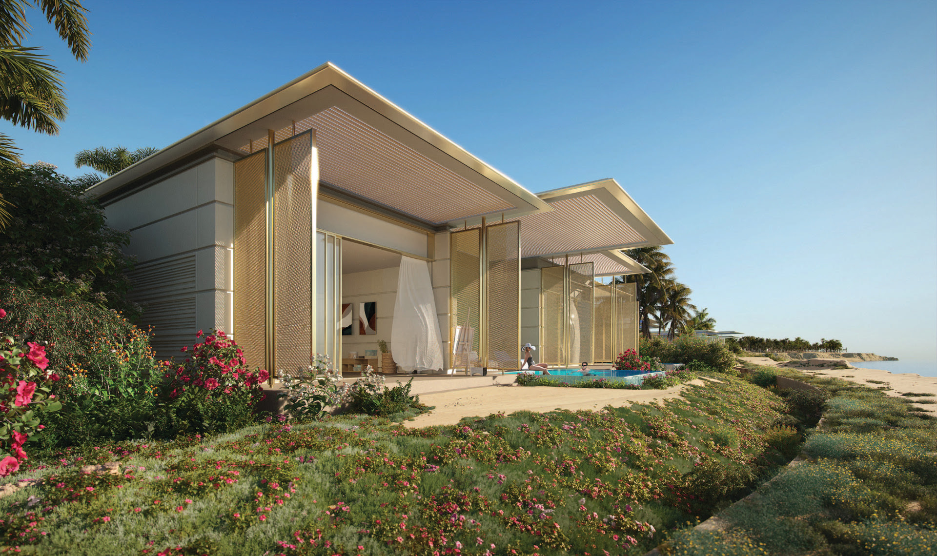 - Просторные бунгало от 100 м² с частными бассейнами и видом на море;
