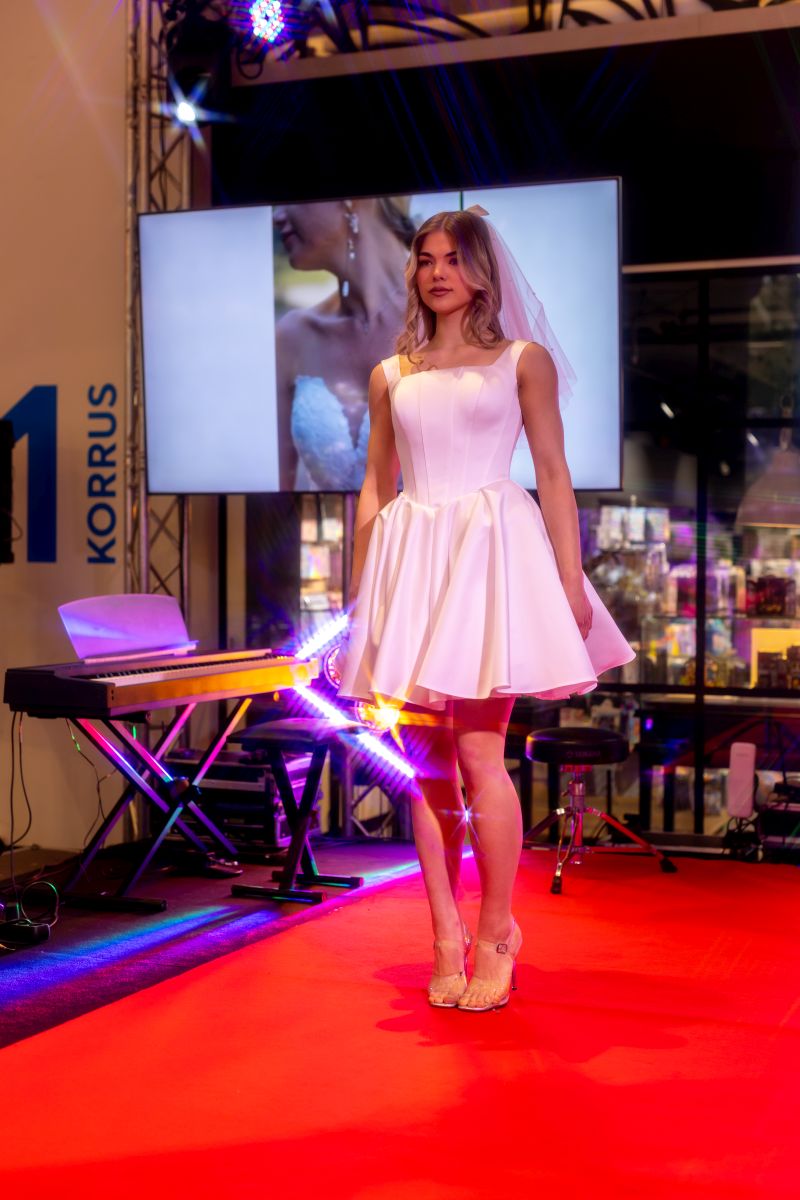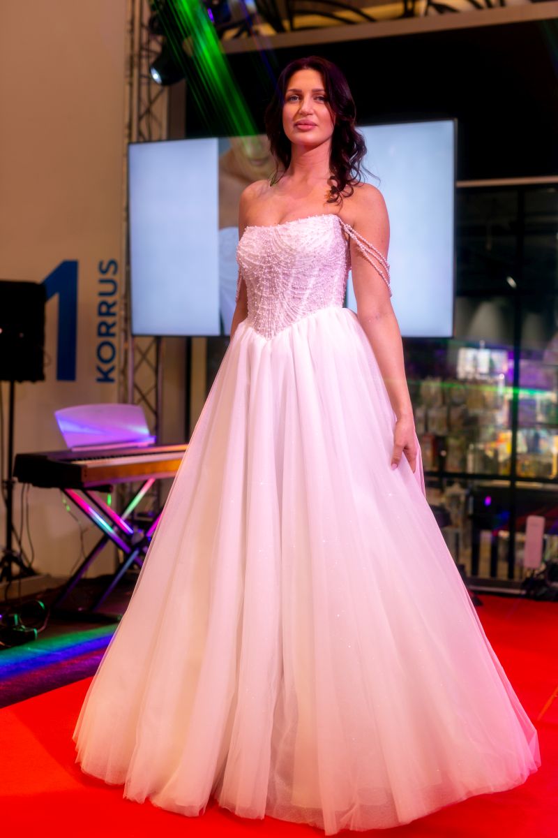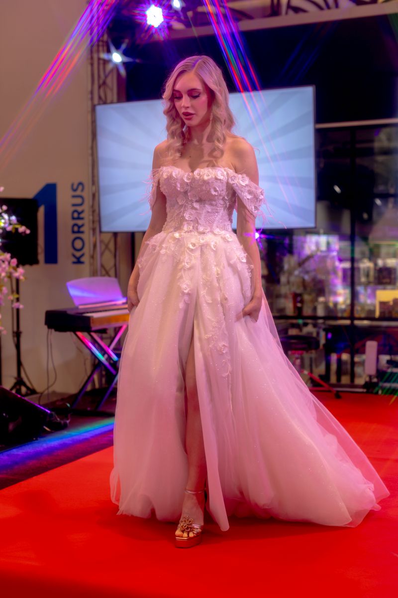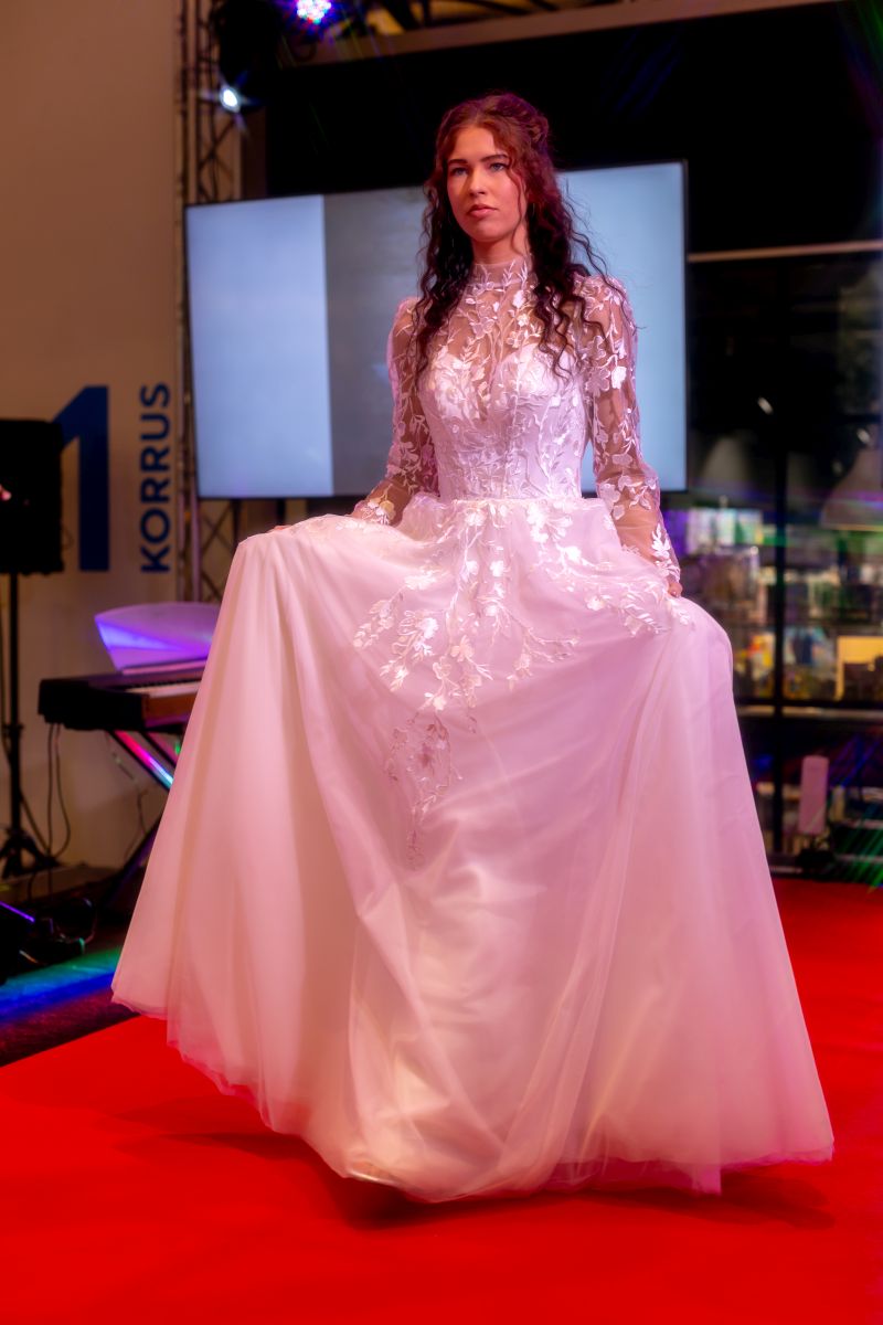 Программа получилась разнообразной: на подиуме показывали свадебные платья и наряды, параллельно шли презентации причёсок для невест и флористических решений. Свои услуги также представили площадки для проведения мероприятий со всей Эстонии — от камерных пространств до более масштабных локаций.