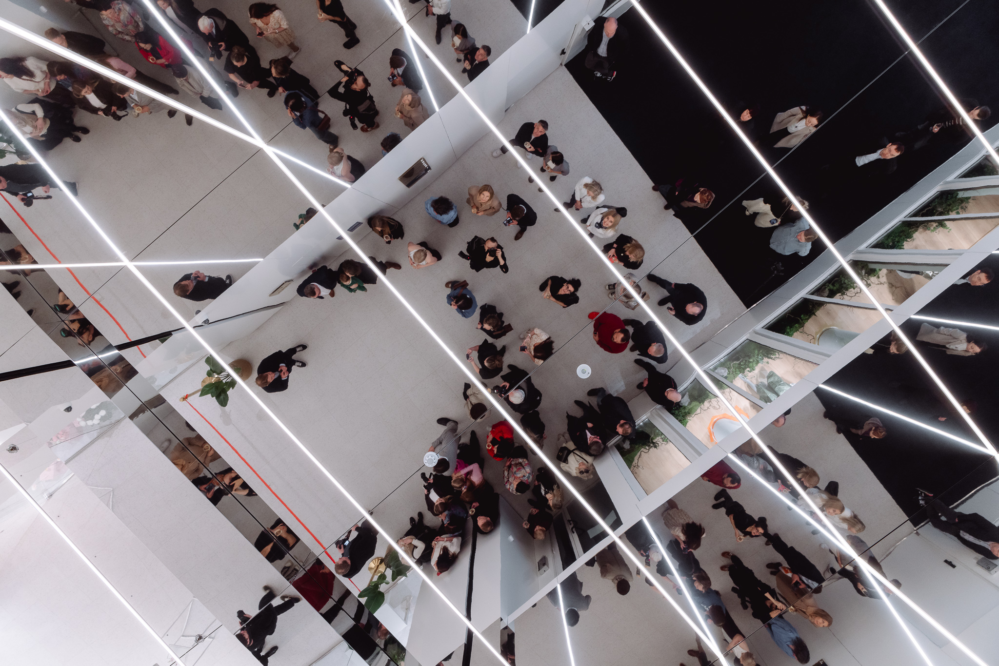 У входа посетителей встречает крупная зеркальная инсталляция, которая превращает пространство в многослойную среду. «Зеркало усиливает всё, что в нём отражается. Я надеюсь, что оно усиливает ту энергию, которая здесь создана», — добавила Илисон.