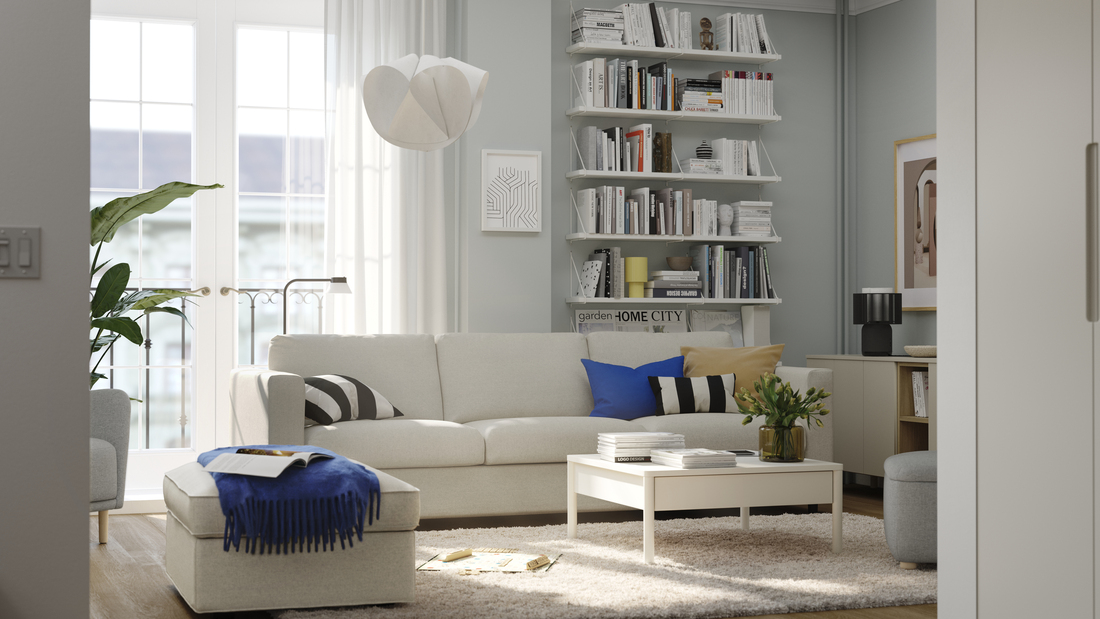 Во многих домах гостиная – это пространство для больших и маленьких. «Когда комнате нужно вместить в себя нужды всей семьи, она легко становится тесной и давящей, особенно если и так небольшая. Чтобы найти место для вещей всей семьи, ищите простые, но умные решения. В угловом стеллаже поместится куда больше любимых книг, фоторамок и других дорогих сердцу вещей, он заполнит пустой угол и может даже стать декоративным акцентом комнаты, а подставка для растений поможет освободить подоконник и создать уютный зеленый оазис», – говорит Миквере. Кроме того, дизайнер интерьера советует не забывать о компактном, но очень практичном предмете мебели – пуфе. Он одновременно служит и местом для гостей, и местом для хранения принадлежностей для хобби.